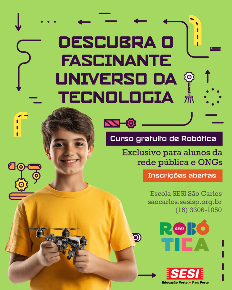 A Escola Sesi de São Carlos está com inscrições abertas para novas turmas do curso gratuito de programação e robótica, voltado exclusivamente para alunos matriculados nas redes públicas de ensino e de Organizações não Governamentais (ONGs).